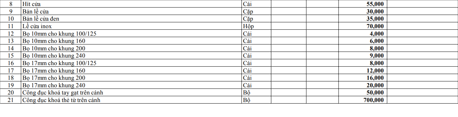 Để giúp quý khách dễ dàng tham khảo và dự toán chi phí trước khi thi công, dưới đây là bảng báo giá cửa nhựa tổng hợp chi tiết được tổng hợp theo mặt bằng giá phổ biến trên thị trường. Bảng giá này bao gồm cánh cửa và khung tiêu chuẩn, chưa bao gồm các chỉ, khóa, bản lề, tay nắm cùng các phụ kiện lắp đặt đi kèm. Tùy từng nhu cầu thực tế, bộ cửa hoàn thiện miễn phí có thể thay đổi khi bổ sung phụ kiện hoặc lựa chọn nâng cấp thiết kế mẫu.