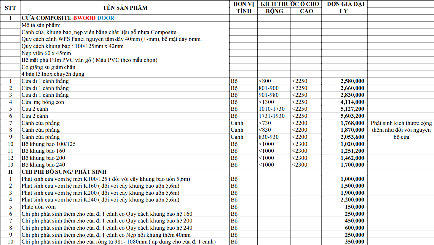Báo giá cửa nhựa Composite
